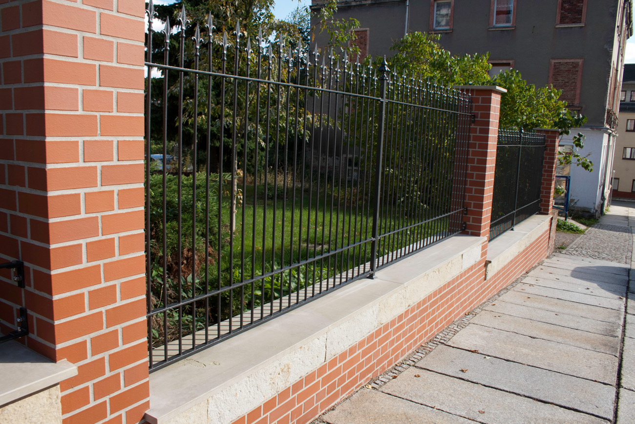Diese Mauer wurde so nachgebaut und ist der im Hintergrund stehenden Villa angepasst.